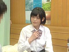 制服姿の若い女性と優しい雰囲気で絡む様子!