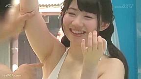 黒髪のスレンダー美人が水着で温泉マッサージ!くすぐったさからそのまま激しく…!