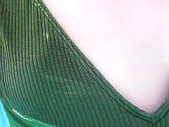 ノーブラで横たわる美少女!食い込みと乳首の優しいいたずら!